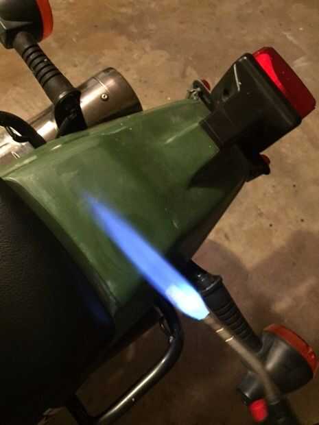 A continuación, encienda la antorcha. Reducir la llama a un minimizar las posibilidades de quemar el plástico. Que pasa demasiado rápido para que no vaya directamente a la plástica con la llama. Generalmente de flotador alrededor 3/4 a 1 "de plástico. Una vez que veas los aceites emergentes, continúan expandiendo alrededor de la zona hasta que han afectado a todos de la zona afectada.