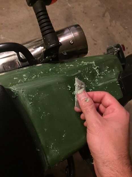 Una vez que el sol ha hecho daño superficial al plástico que usted comenzará a ver decoloración se iniciará pasando a una textura escamosa ceniza. Para solucionar este problema deberá quitar esa capa. Una hoja de afeitar puede utilizarse durante este proceso que raspe la capa superficial. A continuación aplicas calor. Yo uso un soplete de propano pero estoy seguro de que una pistola de calor probablemente podría alcanzar el mismo resultado.