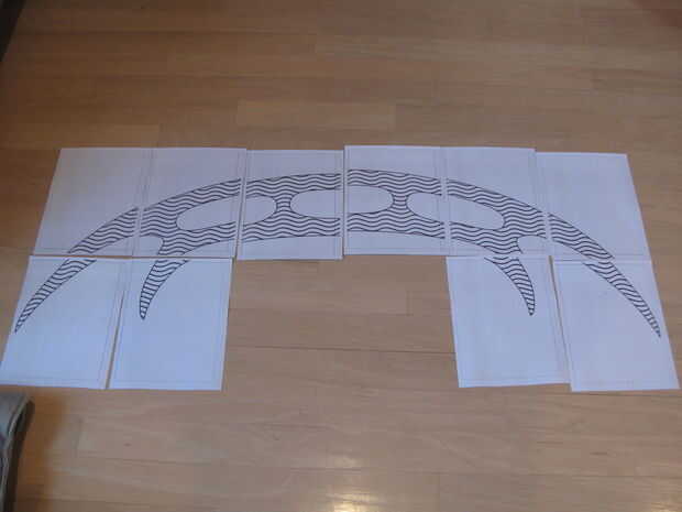 Por supuesto, no tengo una impresora que puede imprimir algo este tamaño, así que superpuesto a una cuadrícula de 7,5 "x 10" rectángulos e imprimirse cada rectángulo como una página independiente (cambiando el dibujo sobre en Inkscape como sea necesario).