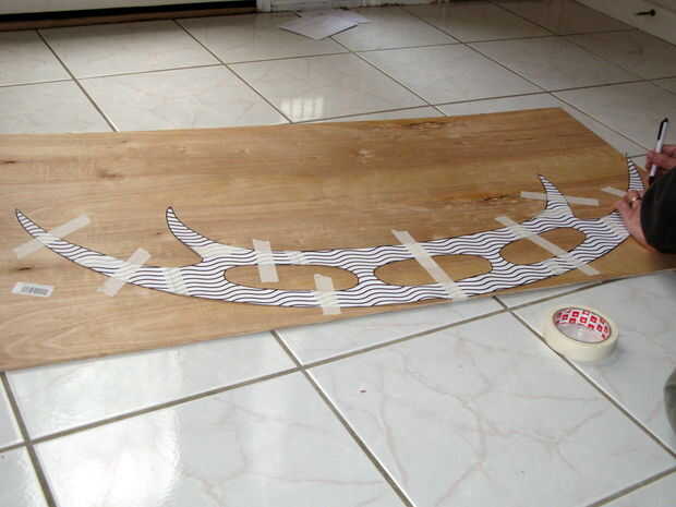 Cinta a madera y trace con un lápiz. (Luego dibujé las líneas donde estaba la cinta con la mano.)
