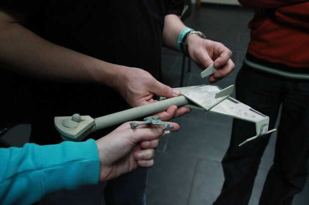Obviamente hay el clásico kit de crucero de batalla Klingon de Estes, pero que requiere algunas habilidades de modelado graves. En este proyecto he trabajado a un simplificado, llamado "escalan de deportes" versión que puede ser construido por cualquier persona (con algunas orientaciones del curso). En el taller el concepto demostró para ser bastante robusto. Varios participantes con poca experiencia en la construcción del modelo, pero el concepto demostró para ser bastante robusta y con cierta orientación todos eran capaces de construir un vuelo crucero de batalla por sí mismos.