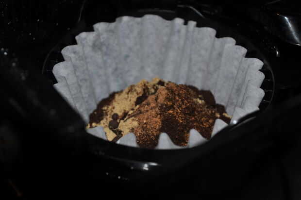 Combine todos los ingredientes excepto el azúcar y leche en polvo en un filtro de café.