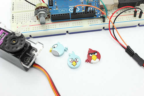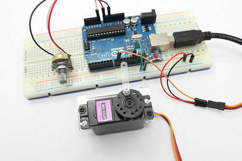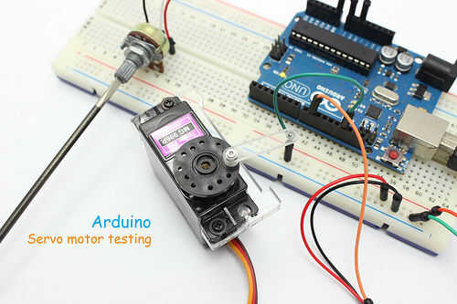 A continuación, conecte tres pernos del motor servo de RC con la placa Arduino respectivamente y abrir el IDE de Arduino.
