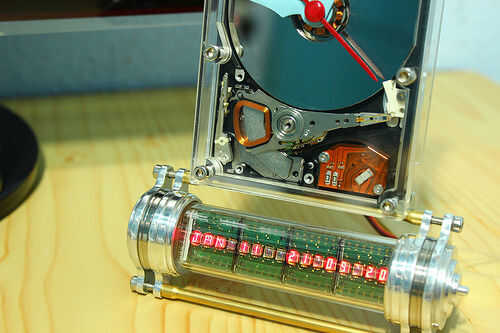 Se mostrará el reloj de la unidad de disco duroel tiempo a través de la NeoPixels se encuentran en la zona de plato de disco duro. Este proyecto está diseñado alrededor de utilizando un cuaderno descartado 2.5" disco duro de.El disco duro se monta en
