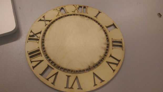 Zoals je op de afbeelding zie heb ik een romeinse klok gemaakt, dit es een bestand de Adobe Illustrator. DIT heb ik gesneden met een impresora láser.