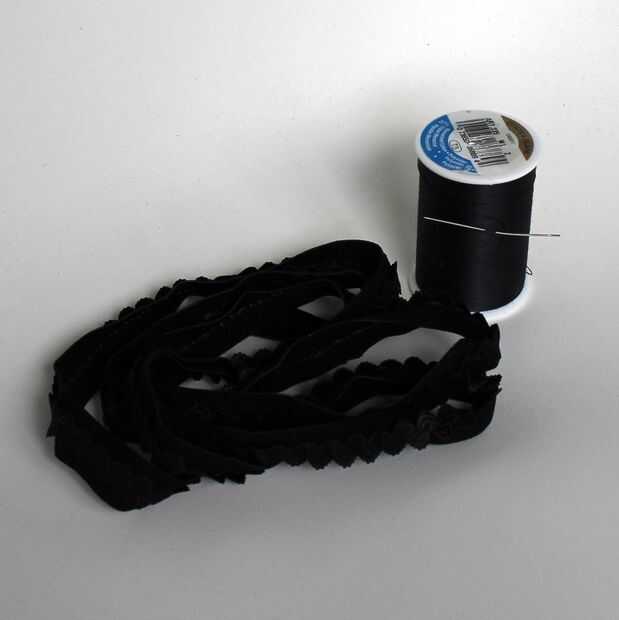 En la tienda, también se encontró una bolsa con cosas de coser varios que contenía algunos ajuste elástico negro.