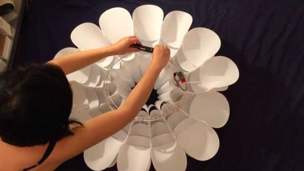 Añadir un forro rígido (estoy usando un rascado perf y pegamento caliente amplio aquí) así que la pueden sobrevivir baile impacto. Cuando el circuito está listo, zip atar todo el alambre del cinturón en la parte posterior del Tutu.