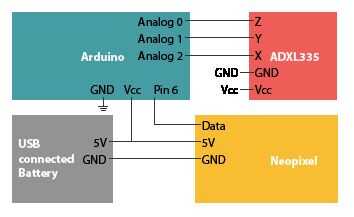 Si quieres saber más sobre como funcionan, aquí son ya excelentes tutoriales en el acelerómetro http://wiring.org.co/learning/basics/acceleromete... y en el de Neopixel https://learn.adafruit.com/adafruit-neopixel-uberguide/overview