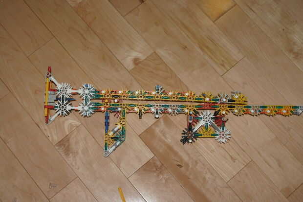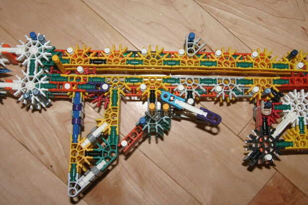 Killerk ha publicado fotos de su magnum pero nunca publicada el instructable así que aquí está.Paso 1: Crear el mango 1. conectar diez conectores verdes con una barra roja y agregar las piezas mostradas2. Añadir 5 conectores verdes y acople un conect