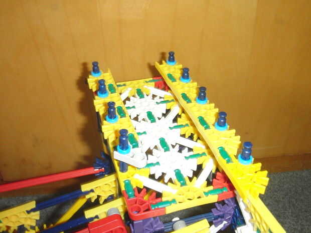 Hi this is my knex Cleopatra ball machine. Tomó cerca de 3 horas para hacer con muchos problemas técnicos a lo largo de la manera como engranaje en el brazo que se mueve la bola. Otro problema constante era la máquina rotando sobre y romper en pedazo