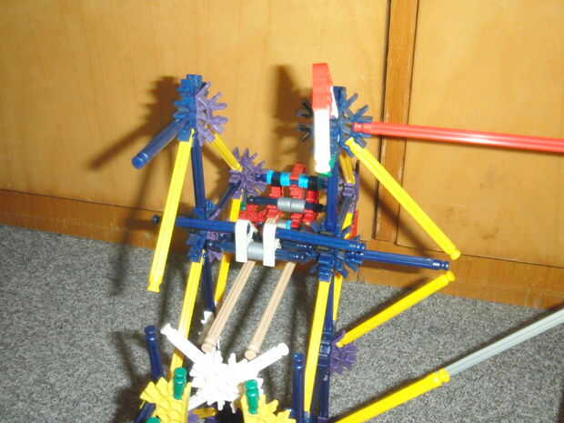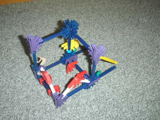 Hi this is my knex Cleopatra ball machine. Tomó cerca de 3 horas para hacer con muchos problemas técnicos a lo largo de la manera como engranaje en el brazo que se mueve la bola. Otro problema constante era la máquina rotando sobre y romper en pedazo