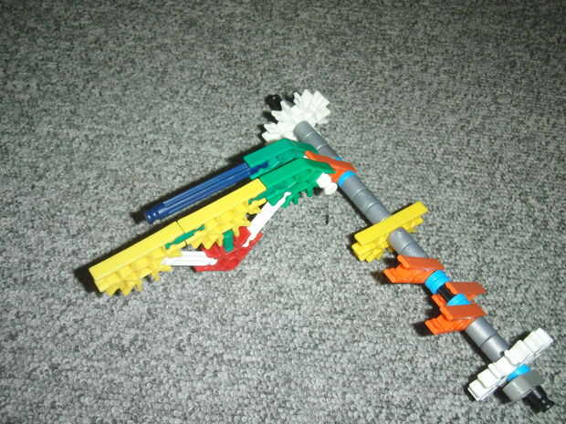 Hi this is my knex Cleopatra ball machine. Tomó cerca de 3 horas para hacer con muchos problemas técnicos a lo largo de la manera como engranaje en el brazo que se mueve la bola. Otro problema constante era la máquina rotando sobre y romper en pedazo