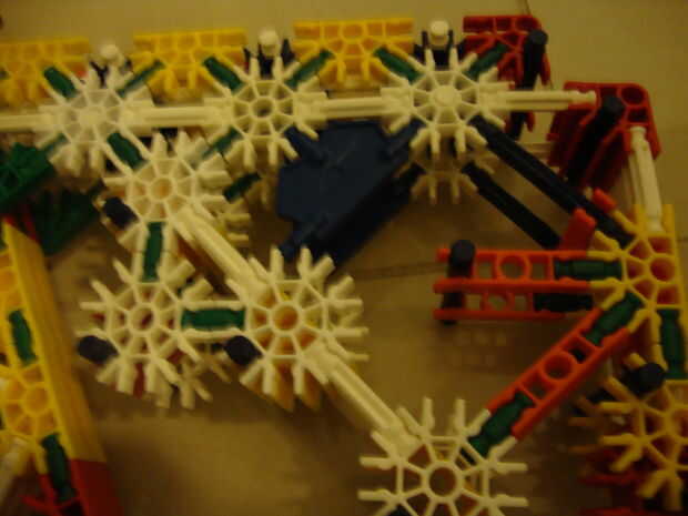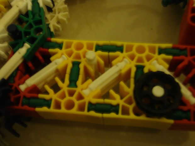 hi this is my old knex high mod jeep. su prety fácil de construir.Paso 1: partespiezas3 conectores y10 barras verdes15 barras blanco9 barras azul3 barras amarillas1 barra roja2 conectores gris6 conecters naranja17 conecters rojo10 conecters amarillo2
