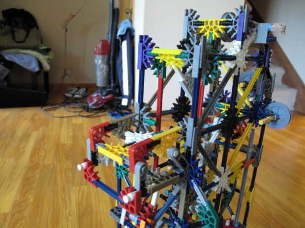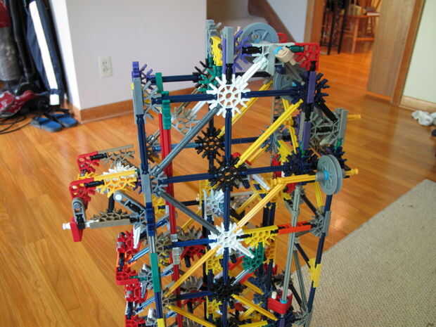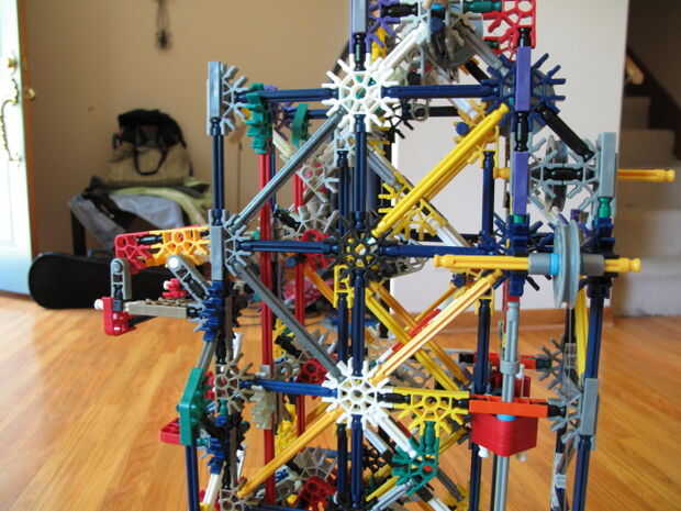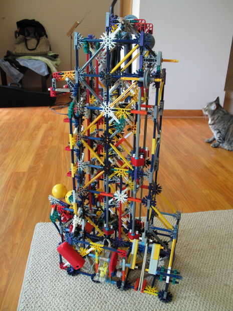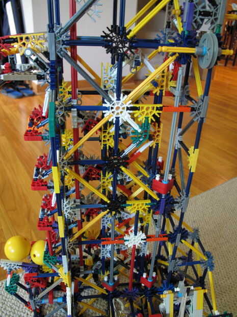 Se trata de un ascensor hizo y trabajó durante un mes. Aquí es cómo funciona: una torre en medio de la torre principal (llamada el elevador) tiene grabbers bola en él. Son los titulares de bola construidos en la parte frontal de la torre. Cuando el elevador sube y baja, las bolas se alternan de un lado a otro, razón por la cual lo nombró el elevador alternador!