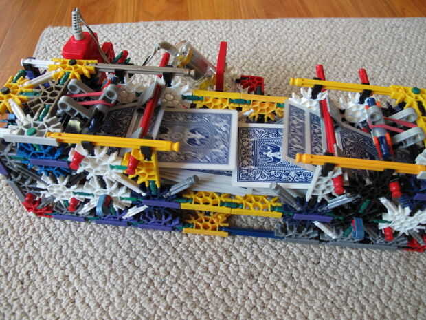 Esta vez decidimos construir una mezcla de tarjeta. Este gadget aseado baraja tus cartas para ti, para que no tengas que hacerlo. Y es motorizado. Que ajusta cualquier tamaño estándar poker o jugar a las cartas, por lo que cualquier persona puede tener uno.