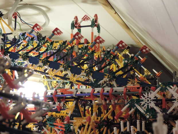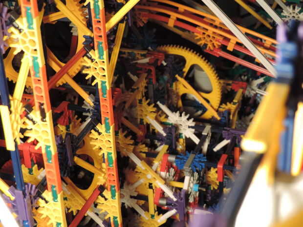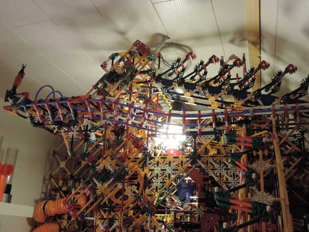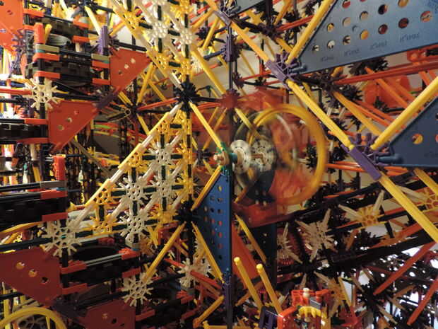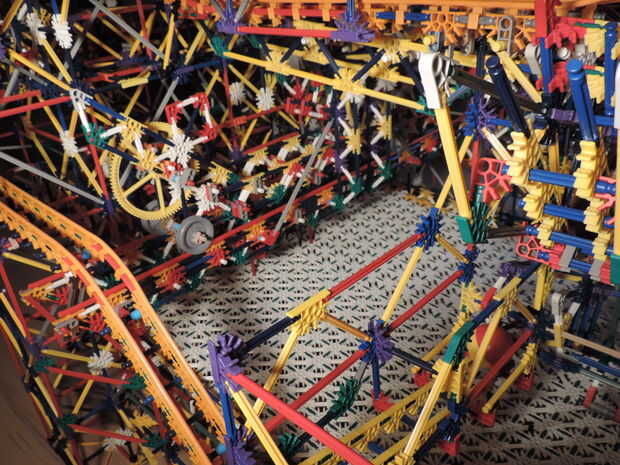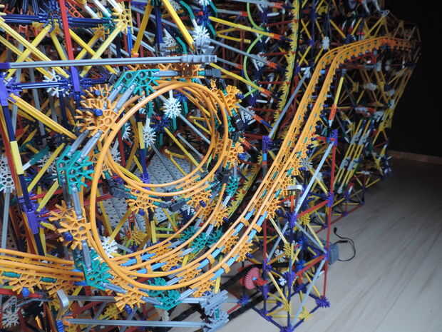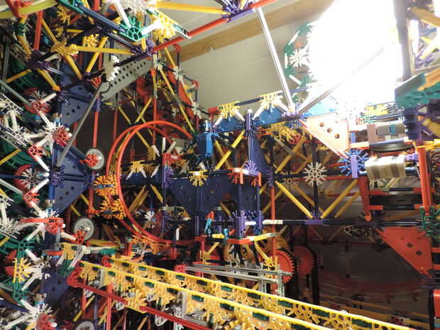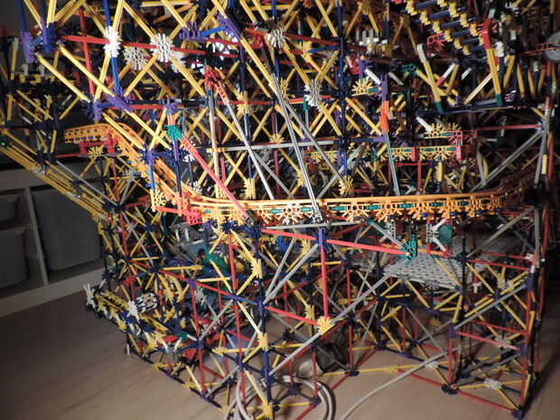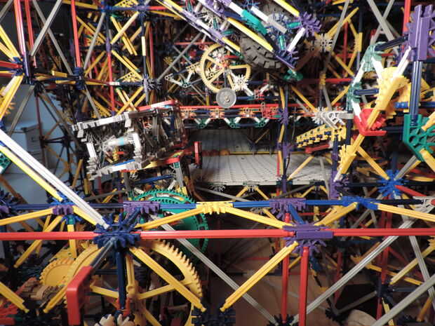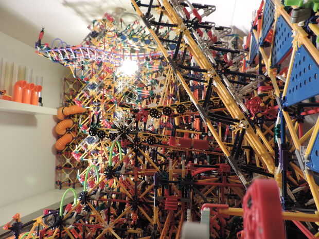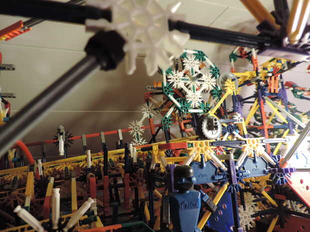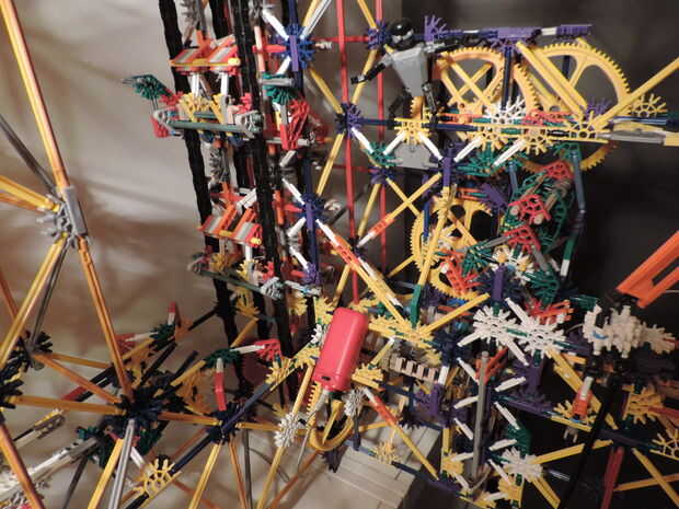 Para esta máquina de la bola decited construir un piso básico no túneles, no mover piezas o cuál es así siempre. Pero para los ascensores decited para pensar fuera de la caja y cómo encontré varios ascensores frescos como el elevador de anillo doble. Esta elevación tiene 2 anillos grandes que gira y va hacia arriba y hacia abajo al mismo tiempo que la hace genial para mirar. También hay un ascensor que funciona como un robot gracias a lo que se llama "KVG Cyber". Para todo el mundo que no sabe lo que es Cyber Knex, Cyber Knex le permite hacer KVG construcciones moverse como un robot por programar los motores para hacer los movimientos que quieras hacer. Pero el problema era que no tenía el material para programar nada, así que hice una transmisión que controla los botones de los motores, lo que lo convierte en un perfecto robot ejecutando sin ningún programa.