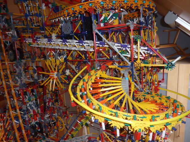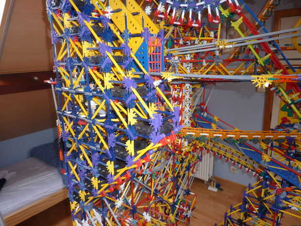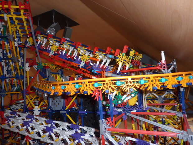 Cuenta con 10 ascensores y 11 rutas, organizadas en 2 redes: red 1 con 1 ascensor y 3 caminos y red 2 8 ascensores y 8 rutas así. La elevación de 10 º es el tirador de bola en el piso. Cuenta como un ascensor demasiado porque también levanta la bola (no mucho pero puede ser mayor o menor dependiendo de la banda de goma)