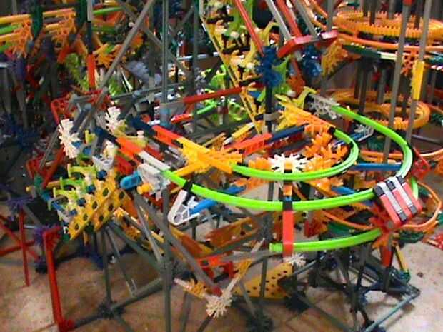 Yo lo llamo, la pista de escaleras de la montaña rusa. Una pista hecha casi totalmente de elementos hechos de pedazos de montaña rusa de k'nex.