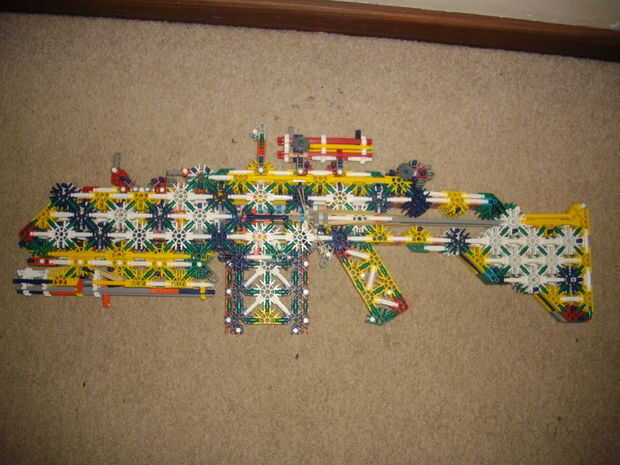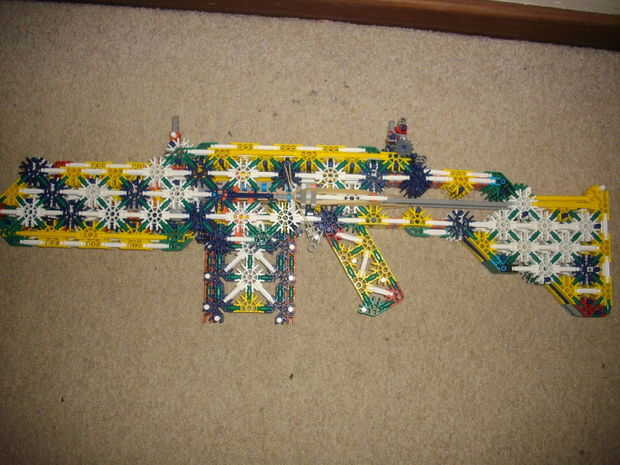 Esta es la segunda verson de mi rifle de batalla KVG. nuevas adiciones incluyen un mayor stock, barril modificado, revista más grande, monumentos de hierro plegable y rieles para fijacion extras monumentos o un lanzador de granadas.