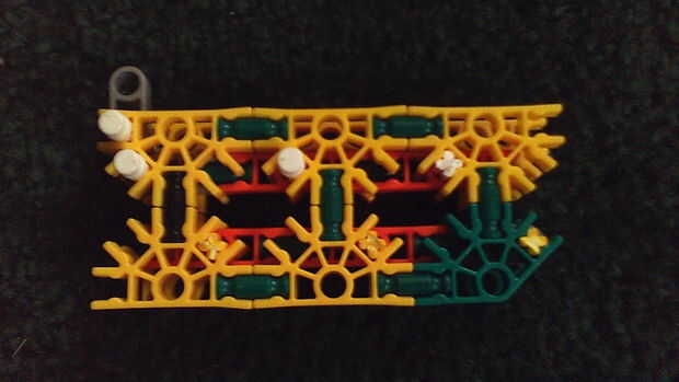hi this is my old knex high mod jeep. su prety fácil de construir.Paso 1: partespiezas3 conectores y10 barras verdes15 barras blanco9 barras azul3 barras amarillas1 barra roja2 conectores gris6 conecters naranja17 conecters rojo10 conecters amarillo2