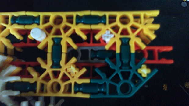 hi this is my old knex high mod jeep. su prety fácil de construir.Paso 1: partespiezas3 conectores y10 barras verdes15 barras blanco9 barras azul3 barras amarillas1 barra roja2 conectores gris6 conecters naranja17 conecters rojo10 conecters amarillo2