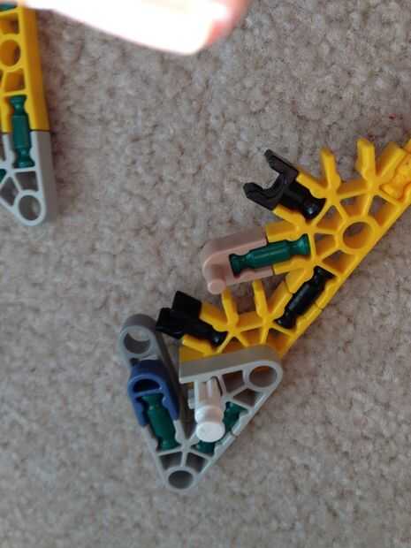 hi this is my old knex high mod jeep. su prety fácil de construir.Paso 1: partespiezas3 conectores y10 barras verdes15 barras blanco9 barras azul3 barras amarillas1 barra roja2 conectores gris6 conecters naranja17 conecters rojo10 conecters amarillo2