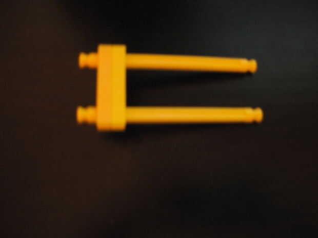 Ahora llegamos al edificio. Consigue 2 barras amarillas y 2 conectores amarillos un chasquido ellos juntos como tal.