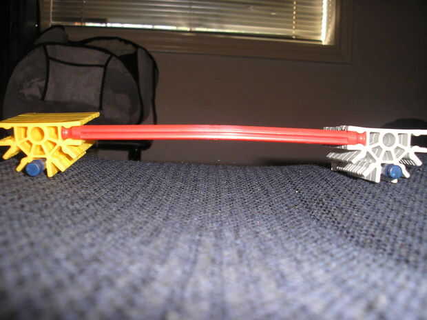 esto es un arco de K'nex totalmente funcional que hice recientemente. Como se puede ver en las fotos, se pliega pequeño bastante para caber en una pistolera de la pierna o envoltura, que no muestro aquí. Es bastante fácil de hacer por mirarlo, así qu