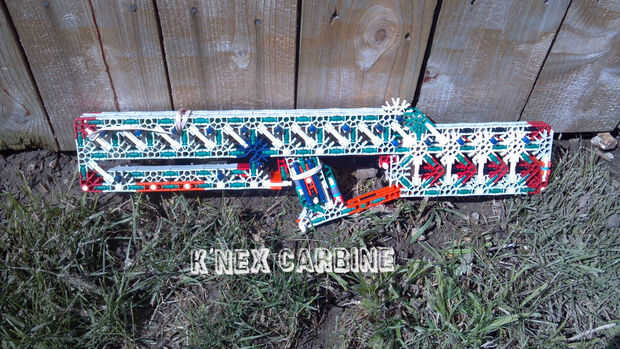 Potencia, fiabilidad y parece fresco es solo algunos de los rasgos de mi carabina nueva. Hábilmente diseñado de mi propia colección de K'nex, esta es un arma que proporcionará horas de diversión de disparos. Sólo puede ser un solo tiro, pero es difícil sostener con buen alcance. Por supuesto, he proporcionado instrucciones claras y lista de piezas, para hacer más fácil crear este impresionante trozo de plástico. Los pros y los contras son las siguientes: