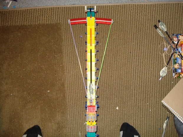 El arco y la flecha es muy pequeña pero potente. el rango varía de 10 pies a 30 pies dependiendo de la cadena.Si obtiene suficientes gustos, voy a publicar las instrucciones