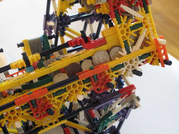 Personas han construido este compaginador de la moneda y han tenido problemas con monedas atascados mientras que deslizarse por la rampa, así que su clasificador tendría así. Si lo hace, puede modificar la pendiente de la bandeja. Puede modificar por su cuenta o seguir este breve tutorial. Gracias a MarsCrystalMan por las imágenes utilizadas en esta sección, los cuadros 4-7 (su compaginador de la moneda se muestra en los cuadros 10 y 11).