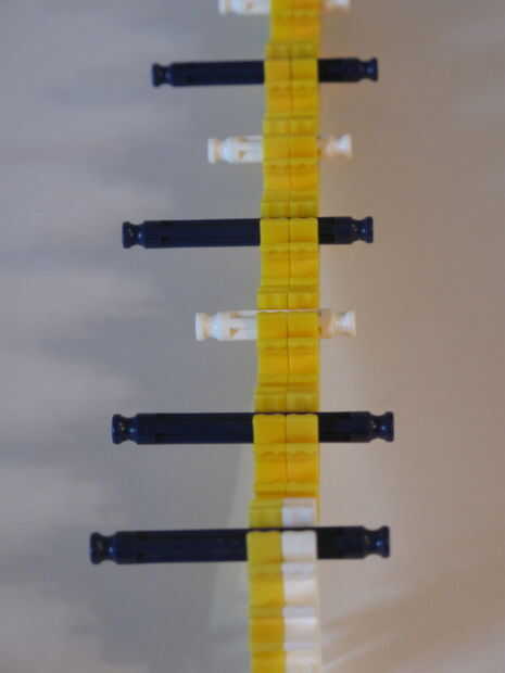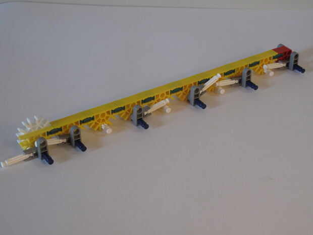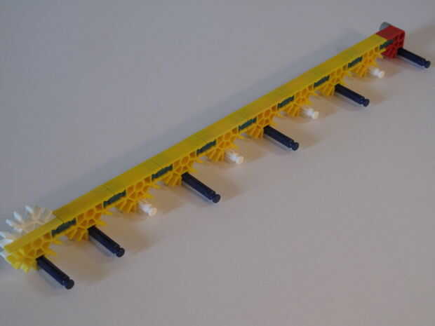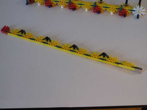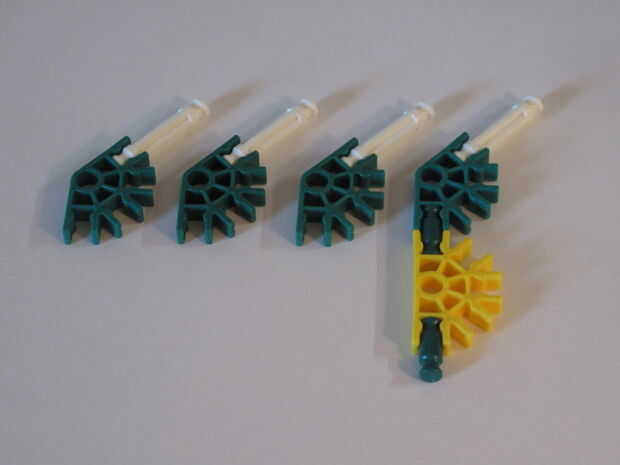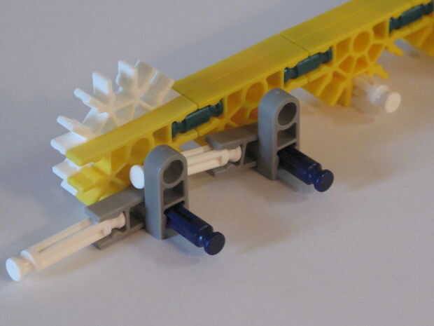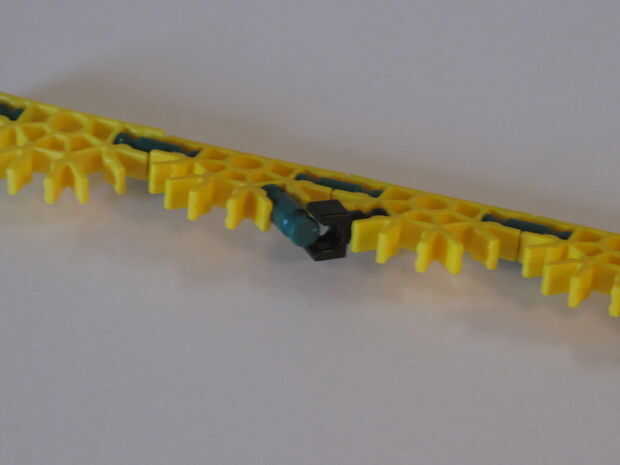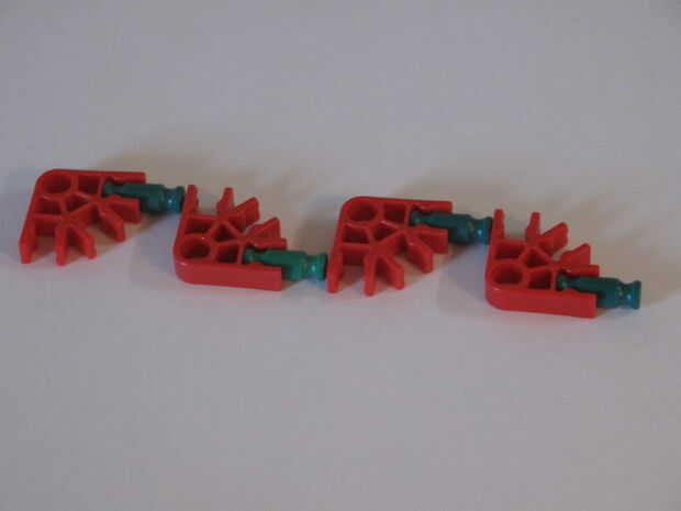 17. Haz tres conectores rojo. Conecte la barra azul de dos a uno y uno para el otro.