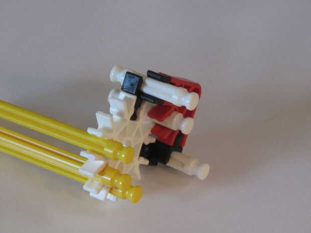 9. Fije a la pieza superior. Debe encajar en el conector amarillo y quedarse allí.