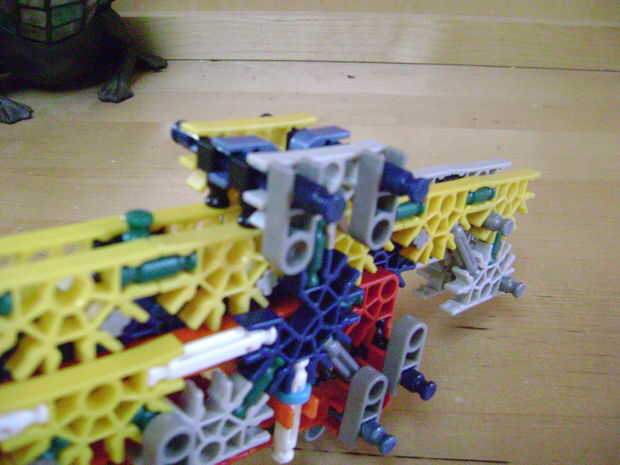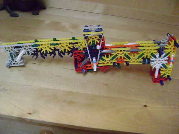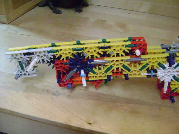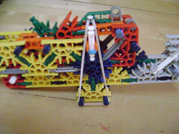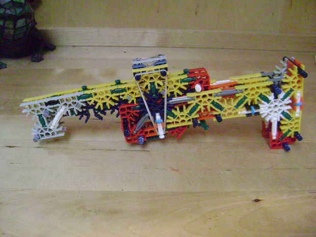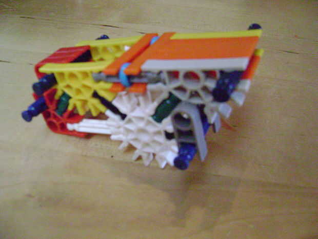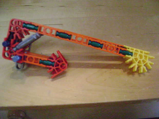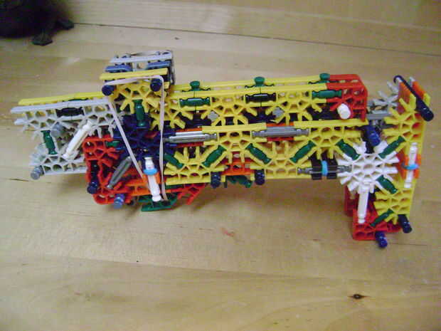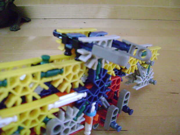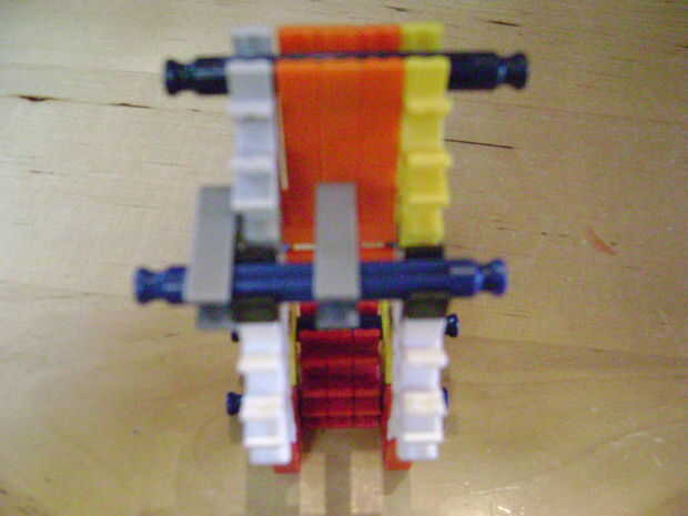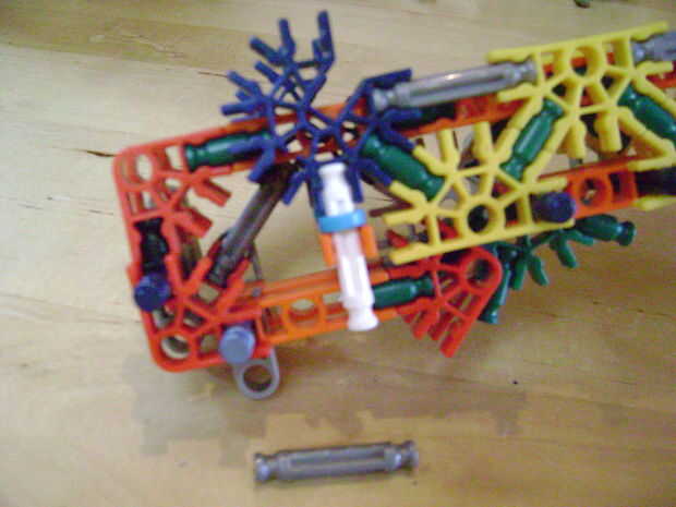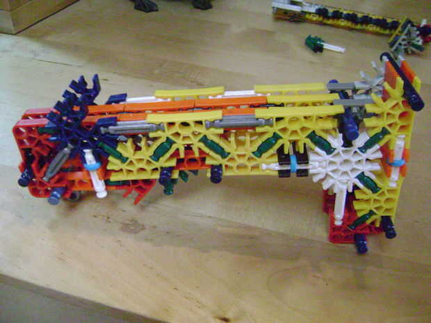 -Si se construye el final de la parte superior como yo lo hice, luego no bloquear en la posición completamente cerrada. Si se construye una conexión cuerpo diferente puede arreglar eso. Está bien como está, porque la mitad inferior empuja contra la barra blanca y el conector amarillo, por lo que no se romperá.