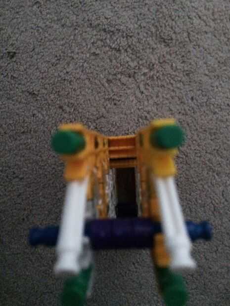 hi this is my old knex high mod jeep. su prety fácil de construir.Paso 1: partespiezas3 conectores y10 barras verdes15 barras blanco9 barras azul3 barras amarillas1 barra roja2 conectores gris6 conecters naranja17 conecters rojo10 conecters amarillo2