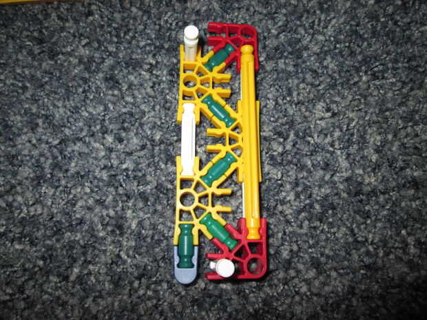 K'nex de una banda de caucho pistola con revista cargar sistema. Revistas pueden ser de muchas longitudes diferentes para propósitos diferentes. Aunque sean como barriles intercambiables, pedirá los compartimientos.Pros:-Semi-automatica-Compartimie