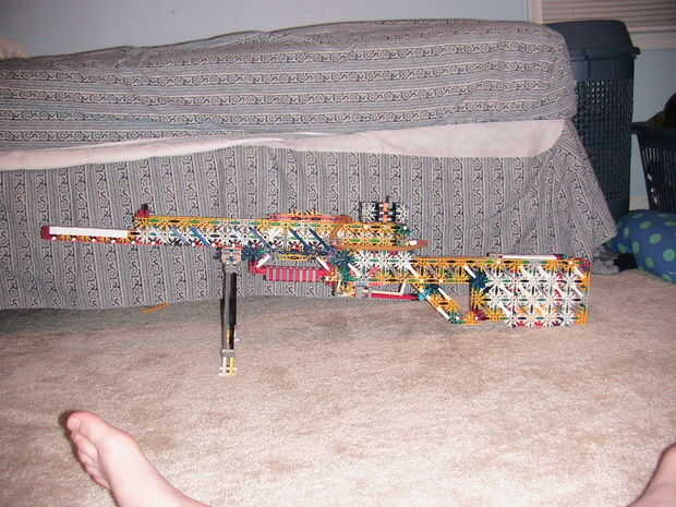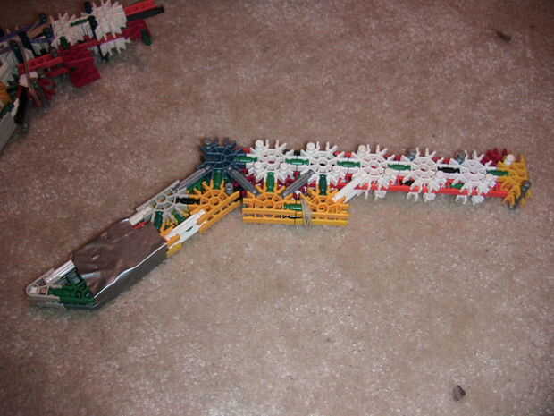 My new knex gunSling Shot Rifle One ShotCuenta con:Un sistema de disparo: |Inicio carga del cañón:)rango de 45 pies con 2 bandas!:)Cómoda manija:)No por lo que bien parece :(Lenta velocidad de disparo :(Crédito para:Asesino-Safecraker para el gatill