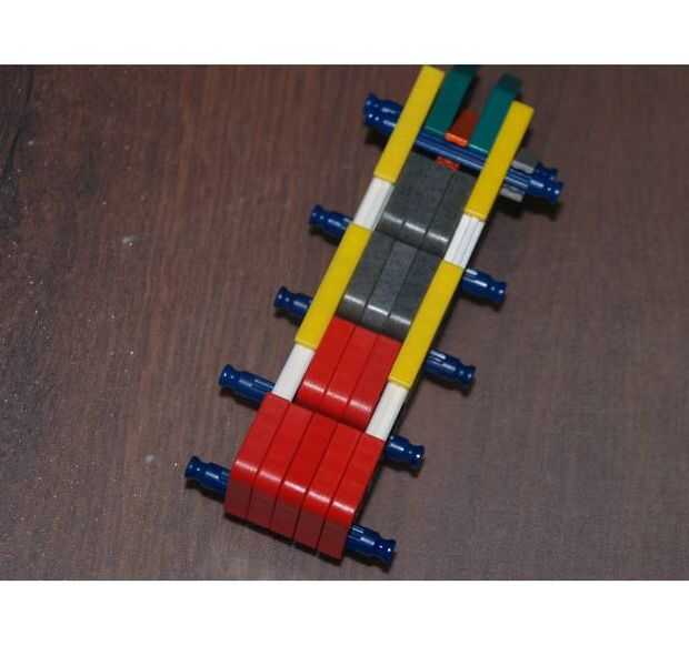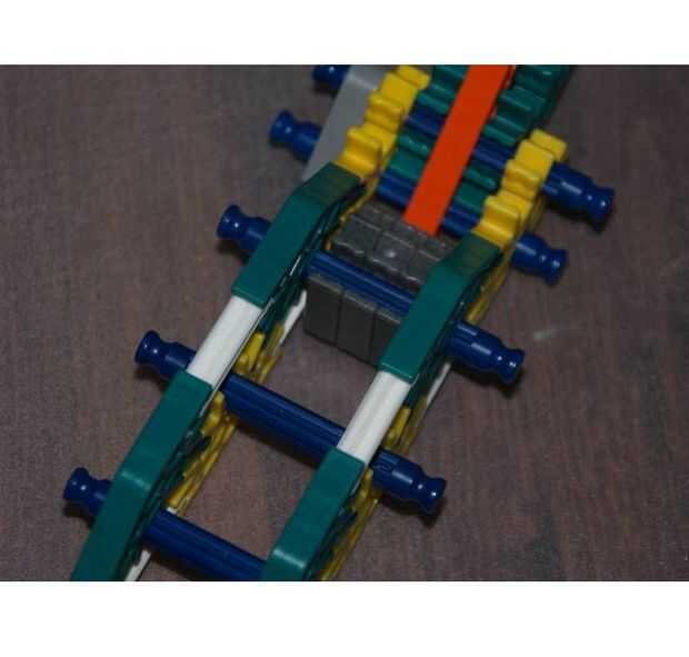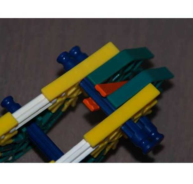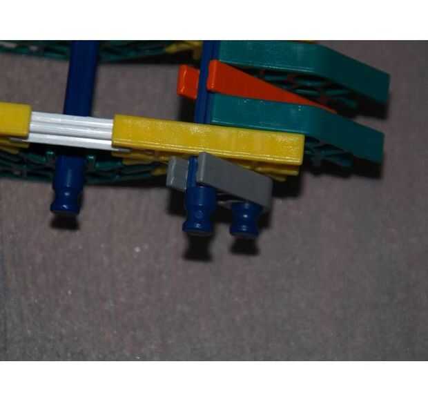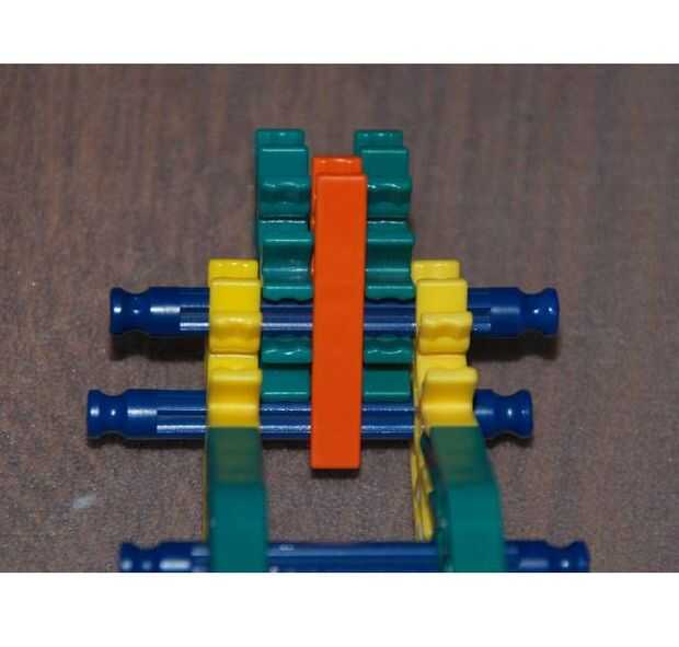 7: poner la barra azul sólo agarró en los conectores de media luna como esta