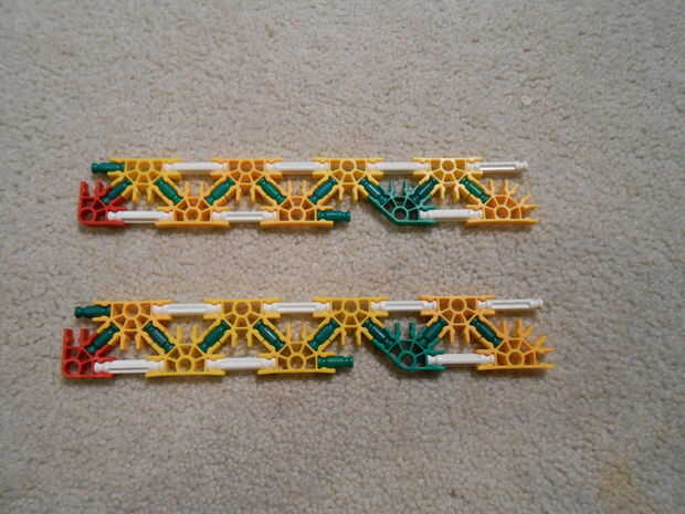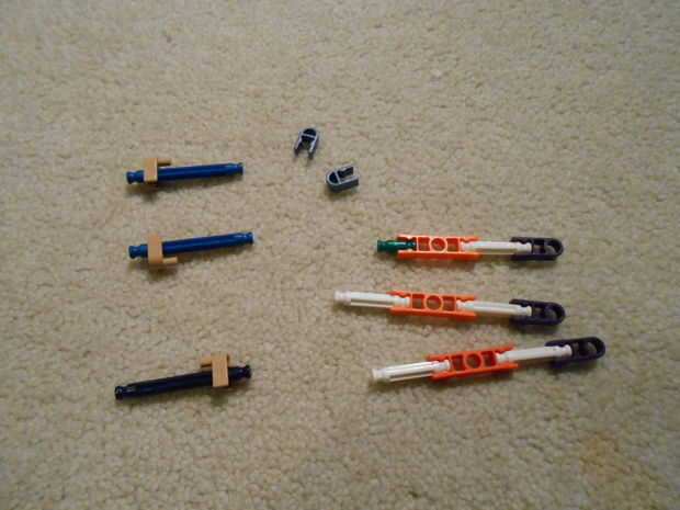 esta es un arma de KVG que usted puede hacer si no tienes muchas piezasPaso 1: Reunir las piezas para hacer el arma que vas a necesitarmango2 conectores verdes2 barras verdesbarra azul 14 conectores de púrpuraCañón3 barras rojas2 barras amarillas2 ba