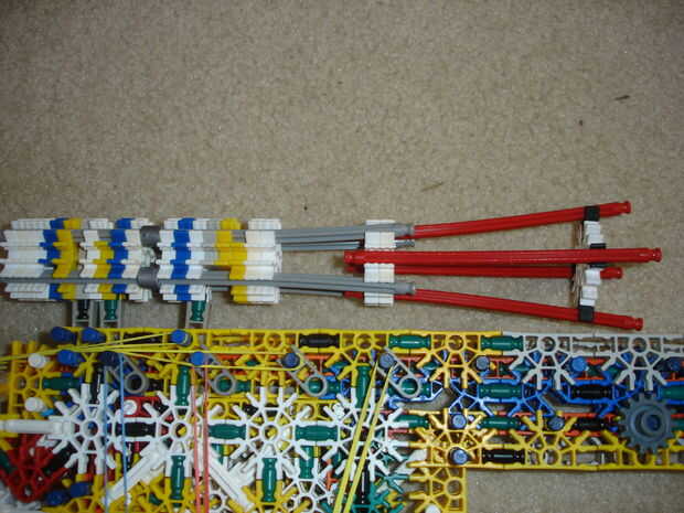 hi this is my old knex high mod jeep. su prety fácil de construir.Paso 1: partespiezas3 conectores y10 barras verdes15 barras blanco9 barras azul3 barras amarillas1 barra roja2 conectores gris6 conecters naranja17 conecters rojo10 conecters amarillo2
