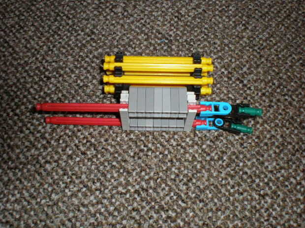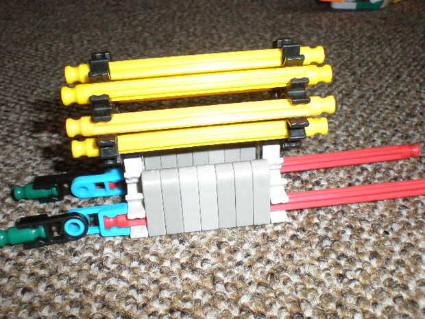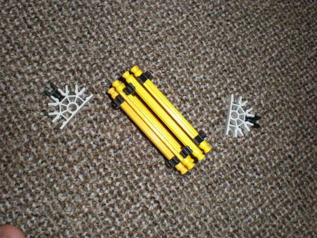 hi this is my old knex high mod jeep. su prety fácil de construir.Paso 1: partespiezas3 conectores y10 barras verdes15 barras blanco9 barras azul3 barras amarillas1 barra roja2 conectores gris6 conecters naranja17 conecters rojo10 conecters amarillo2