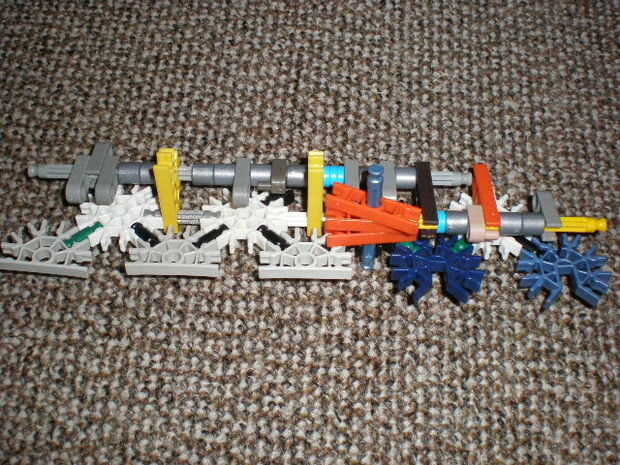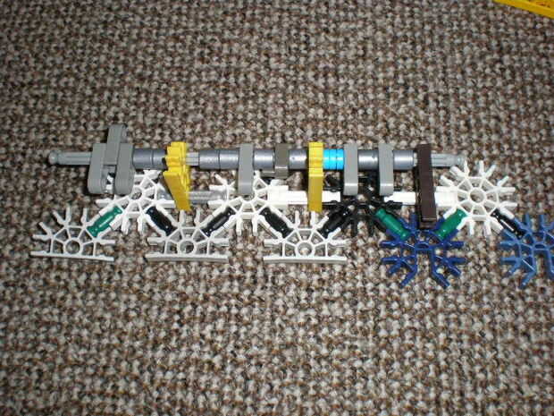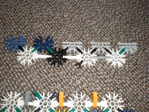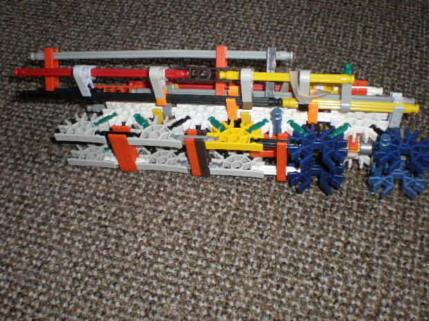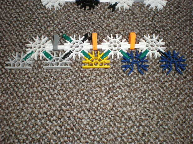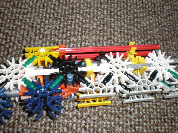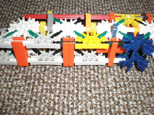 hi this is my old knex high mod jeep. su prety fácil de construir.Paso 1: partespiezas3 conectores y10 barras verdes15 barras blanco9 barras azul3 barras amarillas1 barra roja2 conectores gris6 conecters naranja17 conecters rojo10 conecters amarillo2