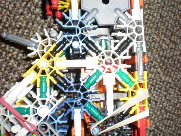 hi this is my old knex high mod jeep. su prety fácil de construir.Paso 1: partespiezas3 conectores y10 barras verdes15 barras blanco9 barras azul3 barras amarillas1 barra roja2 conectores gris6 conecters naranja17 conecters rojo10 conecters amarillo2