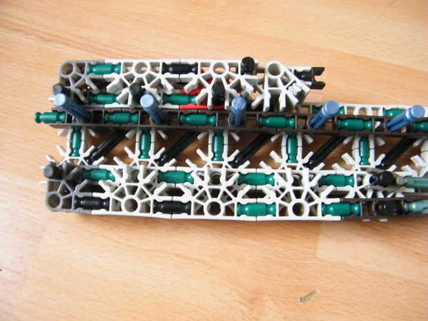 hi this is my old knex high mod jeep. su prety fácil de construir.Paso 1: partespiezas3 conectores y10 barras verdes15 barras blanco9 barras azul3 barras amarillas1 barra roja2 conectores gris6 conecters naranja17 conecters rojo10 conecters amarillo2