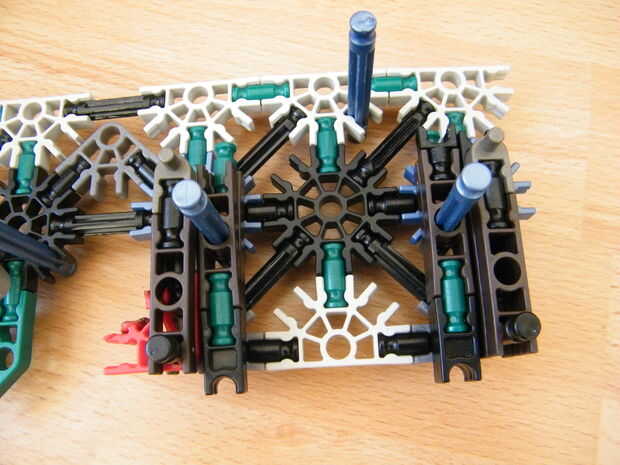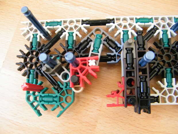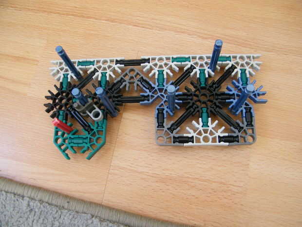 hi this is my old knex high mod jeep. su prety fácil de construir.Paso 1: partespiezas3 conectores y10 barras verdes15 barras blanco9 barras azul3 barras amarillas1 barra roja2 conectores gris6 conecters naranja17 conecters rojo10 conecters amarillo2