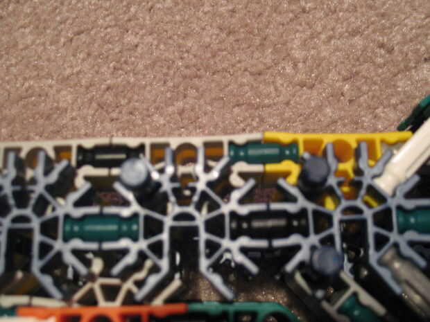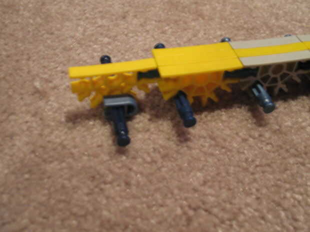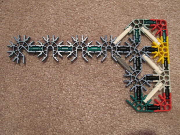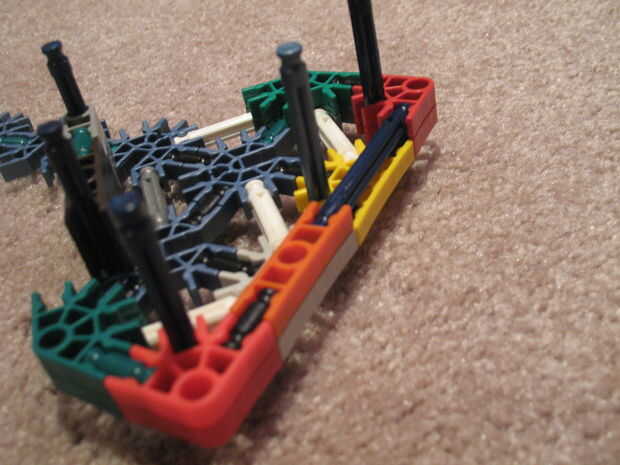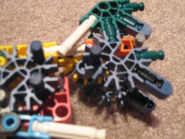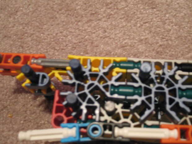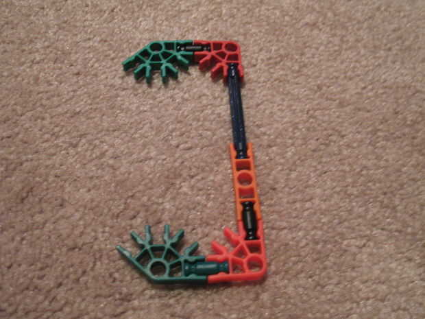 hi this is my old knex high mod jeep. su prety fácil de construir.Paso 1: partespiezas3 conectores y10 barras verdes15 barras blanco9 barras azul3 barras amarillas1 barra roja2 conectores gris6 conecters naranja17 conecters rojo10 conecters amarillo2