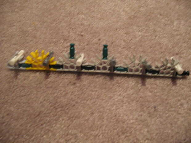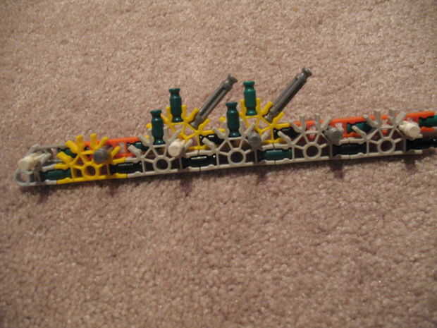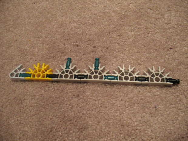 hi this is my old knex high mod jeep. su prety fácil de construir.Paso 1: partespiezas3 conectores y10 barras verdes15 barras blanco9 barras azul3 barras amarillas1 barra roja2 conectores gris6 conecters naranja17 conecters rojo10 conecters amarillo2