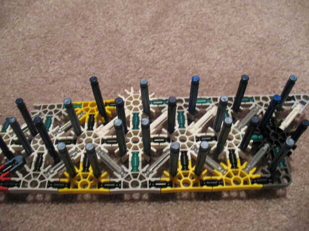 aquí es un soporte de controlador de Knex PS3 que hice. Es muy simple y no utiliza muchas piezas, lo que significa que se puede hacer 2, 3, 4 y aún más veces. Obviamente dependiendo de cuántos controladores tienes. Tiene fácil acceso al puerto USB pa