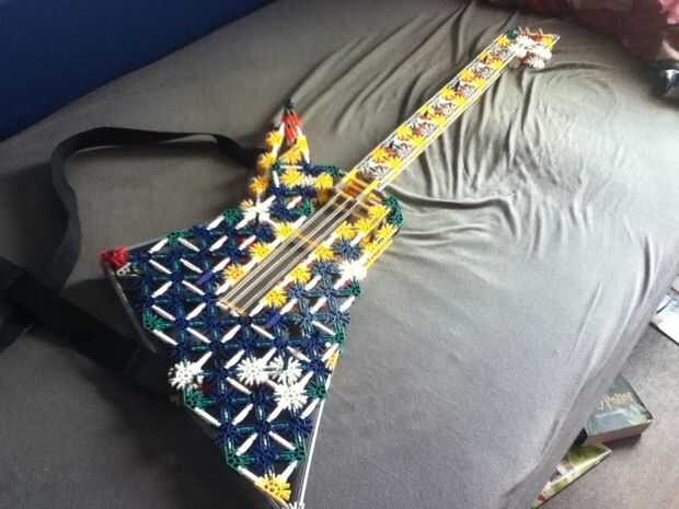 Se trata de una guitarra de metal de KVG. Su muy fresco y fuerte. Las cadenas son cortarla bajo alta presión. Si desea otra guitarra lo publique en los comentarios