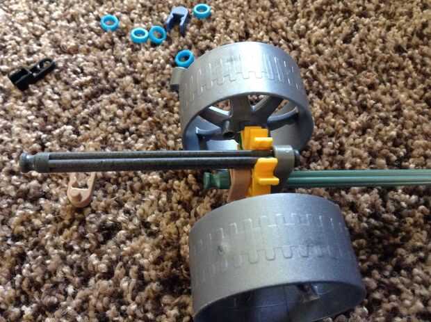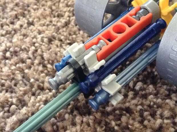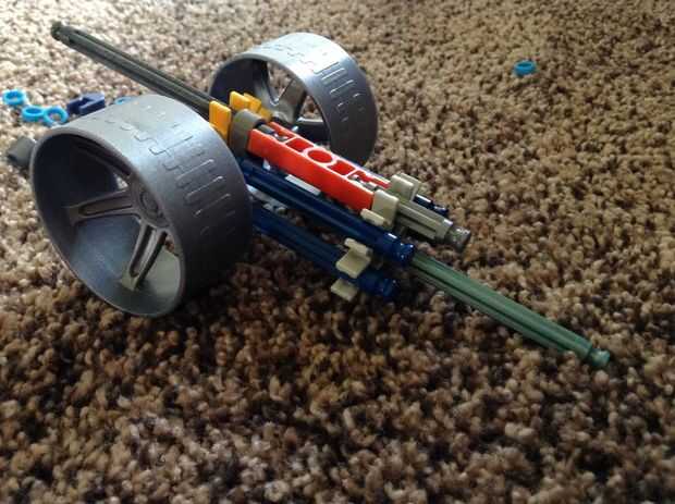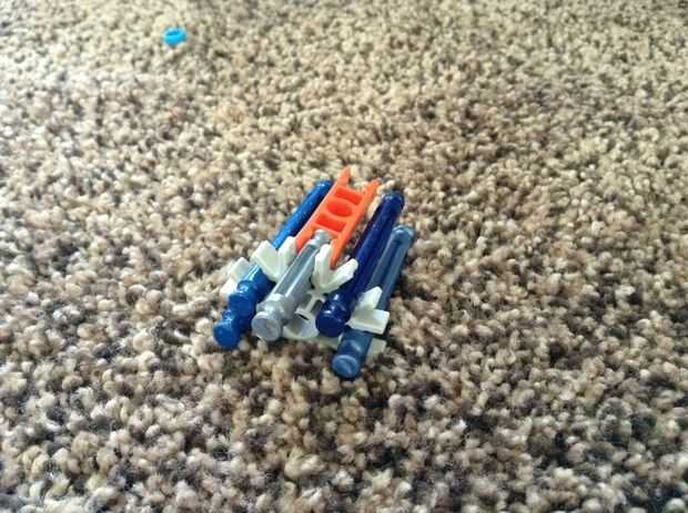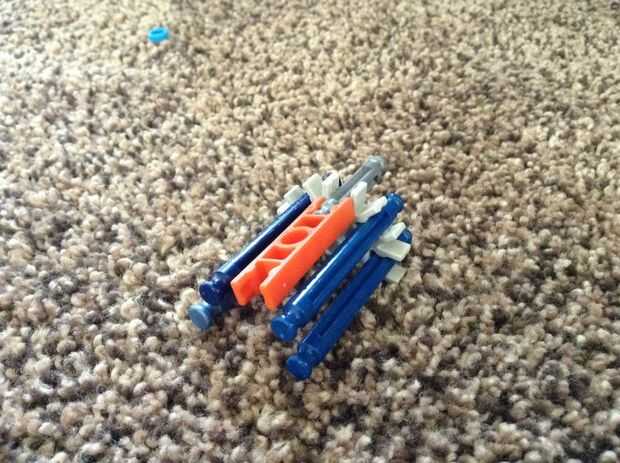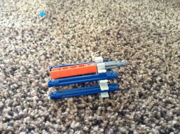 esto es algo que no le muestran cómo hacer cuando compre los conjuntos. Con menos de 15 piezas (y una banda de goma), esto puede disparar su munición es un buen 4 pies, dependiendo de cómo es fuerte la goma. También puede ser modificado para disparar